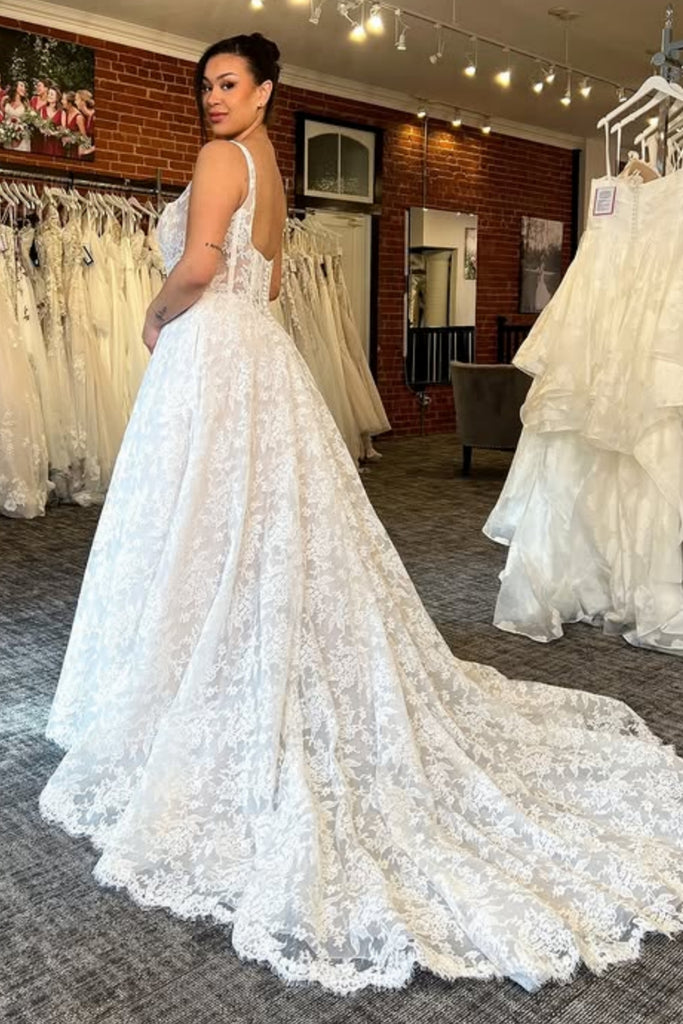 A Line Square Neck White Lace Long Prom Dress, White Lace Formal Dress, White Evening Dress A2567