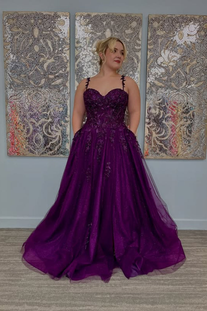 A Line Sweetheart Neck Purple Lace Long Prom Dress, Purple Lace Formal Dress, Purple Evening Dress A2499